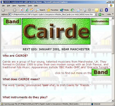 The history of the band and its members, from 1999 to 2006, appears below, including details of Phil and Rob's former band Cairde. All the links open in new windows, and all the pictures can be clicked on to see them larger.