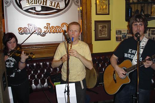 During the summer of 2005, the three of them worked on writing a few more songs to the Drunken Lullabies, and played some at a singers' night in Didsbury. They played a few numbers with Phil's other band Devil's Dance, at a couple of their gigs in Chorlton. They always had someone in the bar dancing along, usually to the set of cheery polkas that Cairde always played, called John Ryan's and Egan's Polkas.